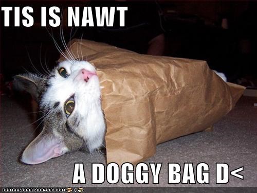 Upload image or video on your pc 1. The term doggy bag was popularized in the 1970s etiquette columns of many newspapers. Caption a meme gifmaker. Nowadays instead of requesting. A small bag that a restaurant provides so that you can take home any food you have not finished. The doggy bag is a common phenomenon in the united states at least since the 1940s when during the war food shortages were a fact of daily life and pet owners were encouraged to feed their animals with table scraps. It s time to take a moment of paws from your ruff day at work and remember that there s no problem in this world that can t be fixed by.